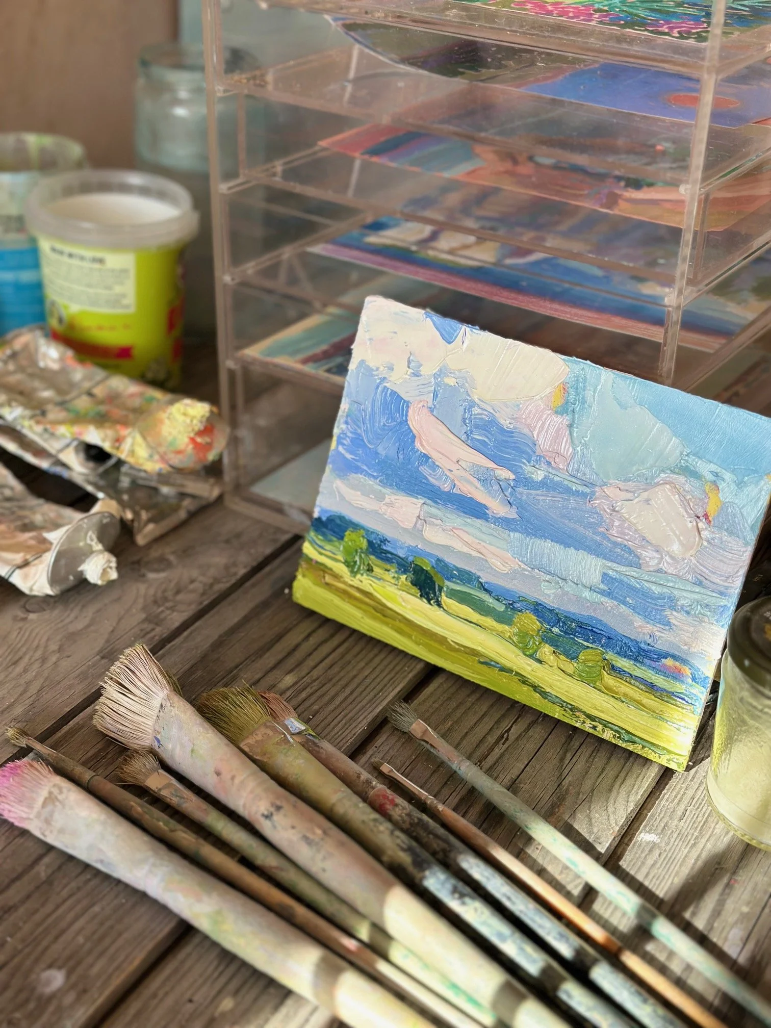 This immersive workshop offers a rare opportunity to slow down, focus deeply, and explore landscape painting in a supportive, unhurried environment. Working from our beautiful studio space, you’ll use photographs and the surrounding landscape as inspiration, learning how to translate atmosphere, light, and feeling into paint. All equipment and materials are included, and you’ll be working with water-based oil paints. The workshop is open to all abilities, including complete beginners. Lucy’s teaching style is informal, generous, and encouraging, with an emphasis on painting for enjoyment, experimentation, and discovering your own artistic voice.
